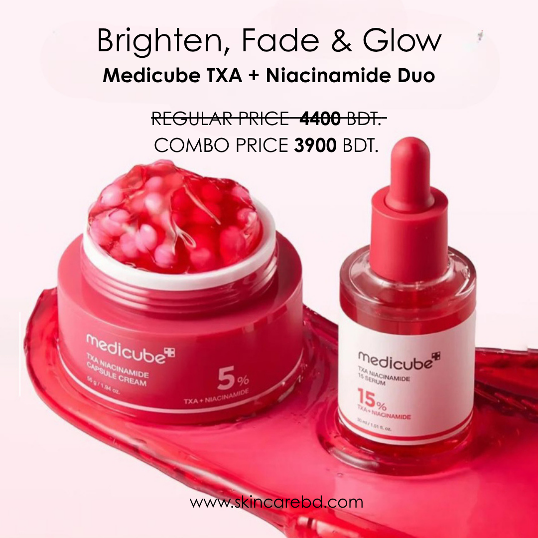 Transform dull, uneven skin with the Medicube TXA Serum & TXA Cream Duo, a powerful brightening system formulated with high-performance Tranexamic Acid (TXA). Designed to visibly fade dark spots, acne marks, sun pigmentation, and uneven skin tone, this duo is your complete routine for a clearer, brighter, and healthier complexion.