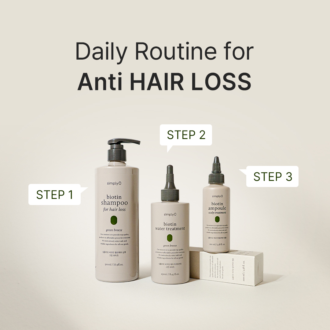 simplyO Anti Hair Loss Biotin Trio Set (Shampoo 500ml + Water Treatment 250ml + Ampoule 100ml)